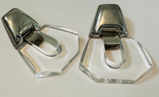 Vintage Rare Bayanihan Sterling Silver & Lucite Post Earrings 18.2g – Signed 925 – 1980s Modernist Statement Earrings