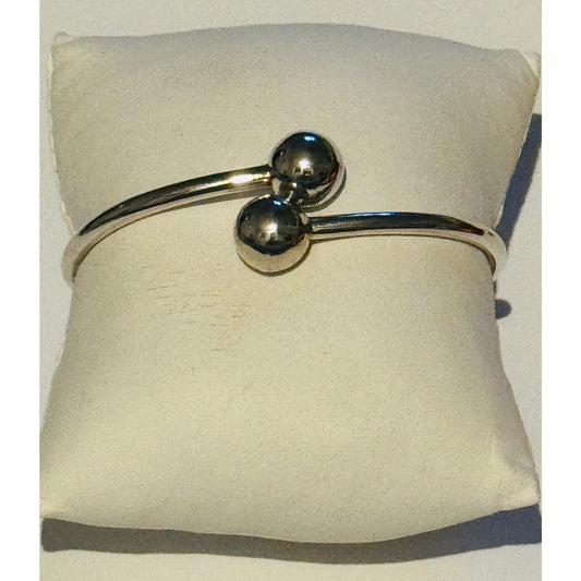 Vintage ATI Mexico 925 Sterling Silver Hinged Bypass Ball-End Bangle Orb Bracelet 14.8g