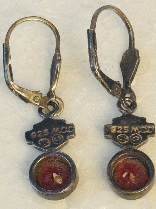Pre Owned Rare HTF Sterling Silver HARLEY DAVIDSON Red Garnet Biker Leverback Earrings
