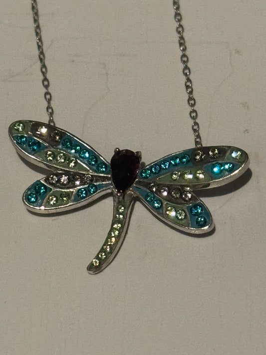 Vintage 925 Sterling Silver Dragonfly Pendant Necklace w/ Swarovski Crystals 18”