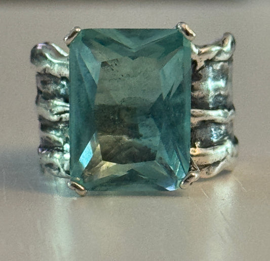 Silpada Sterling Silver Statement Ring Size 9 | Aquamarine Gemstone | Wide Band 925