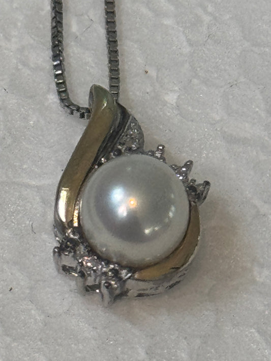 Alwand Vahan 10k Yellow Gold & Sterling Silver Pearl & Diamond Pendant Necklace 17”