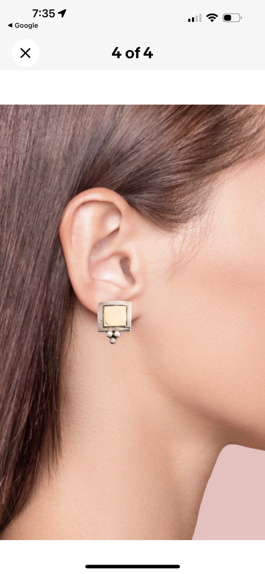 Native American Navajo 14k Gold and Sterling Silver Earrings Signed C