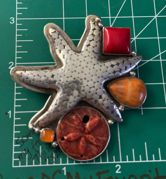 1990s Vintage Starfish Pendant Mixed Stones 31g Silver Amy Kahn Russell AKR Pendant