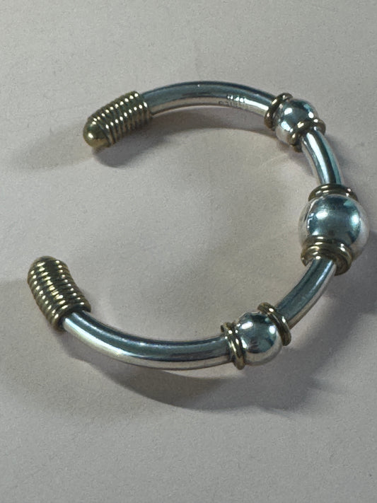 Pre Owned TAXCO Sterling Silver And Brass Ball Cuff Bracelet