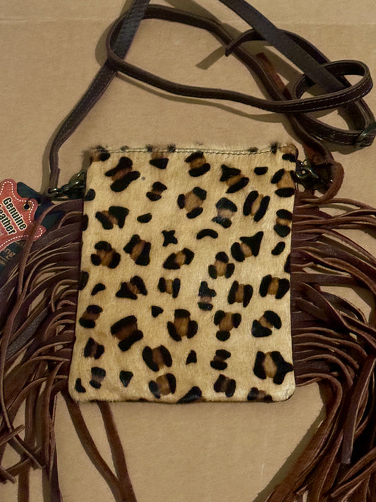Brand New Leather American Darling Fringe Leopard Print Crossbody Purse