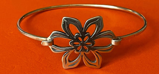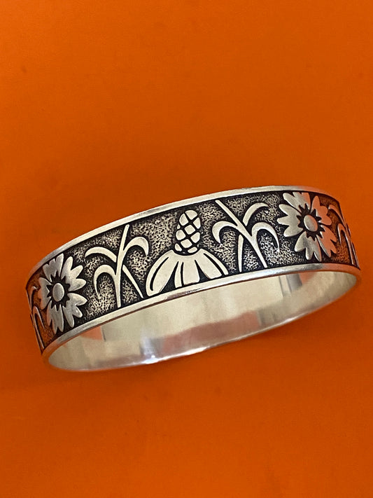 Preowned James Avery Retired Rare Silver WILDFLOWER SUNFLOWER Bangle Bracelet Sz M