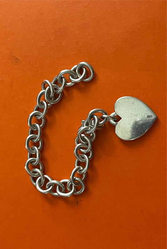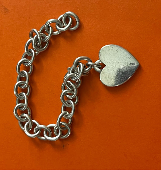 Pre-Owned James Avery Retired Sterling Silver Cable Chain With Large Heart Bracelet