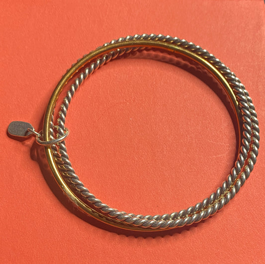 James Avery Retired Silver and Bronze Triple Stack Bangle Bracelets Size M