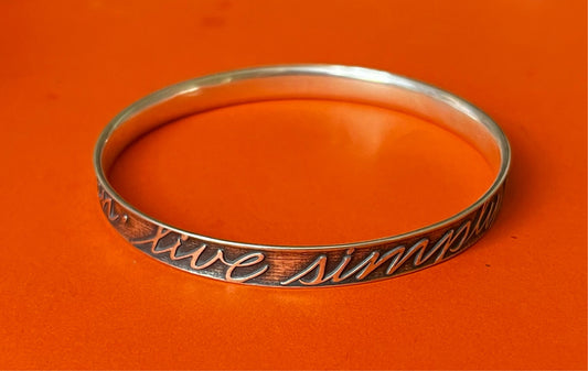 Pre-Owned Retired James Avery Sterling Silver Laugh Often Live Simply Love Deeply Bangle Bracelet