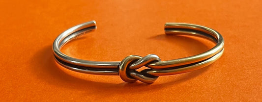 Pre-Owned James Avery Retired Sterling Silver and 14k Gold Lovers Knot Cuff Bracelet Size Small