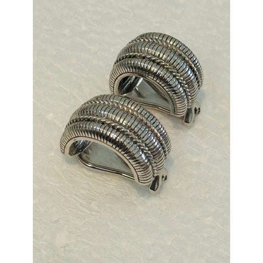 Judith Ripka Sterling Silver Ribbed Hoop Earrings 925 Omega Backs 15.4g Vintage