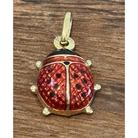 Vintage 14k Yellow Italian Gold Red & Black Enamel Ladybug Pendant Or Charm EUC