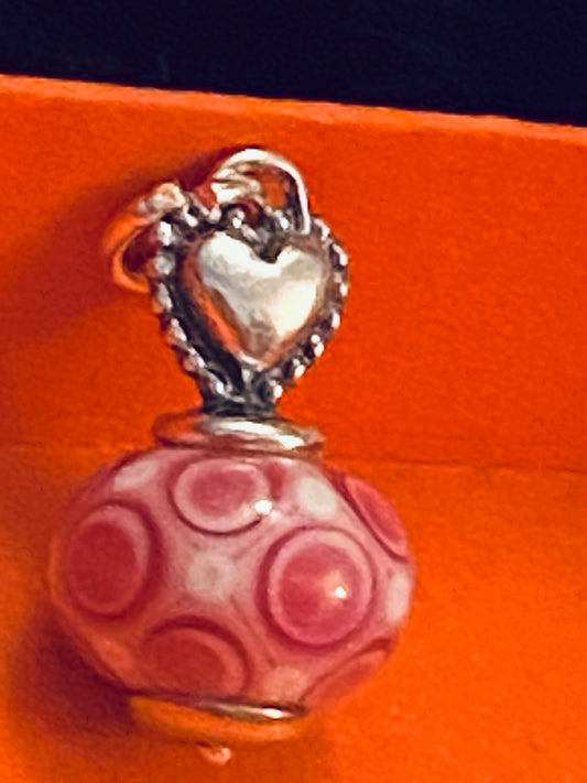 Pre-Owned James Avery Retired Silver Heart Pink and White Glass Art Bead Charm