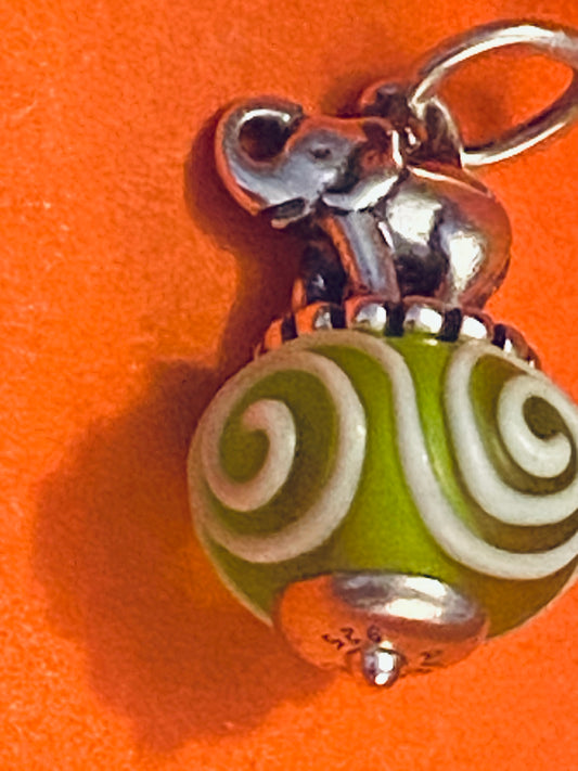 Pre-Owned James Avery Retired Glass Art Silver Elephant Finial Bead Charm