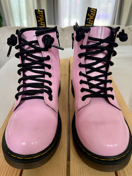 Pre Owned Dr Martens Girls DOC MARTENS Air Wair Sole Bouncing PINK Patent Leather Boots Size 2 EUC