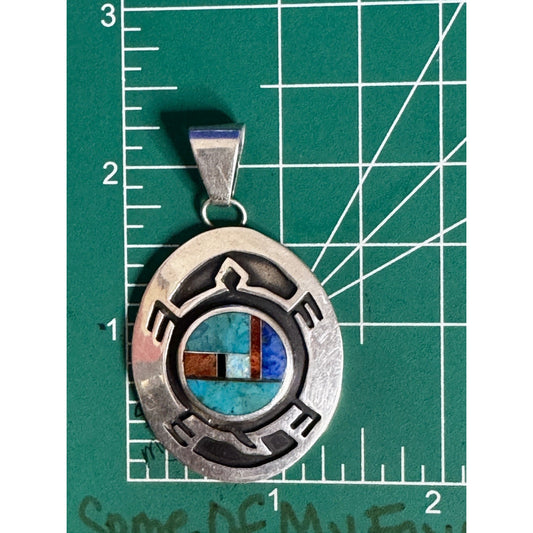 Vintage Zuni Native American Sterling Silver Inlay Pendant Signed F.L. 925