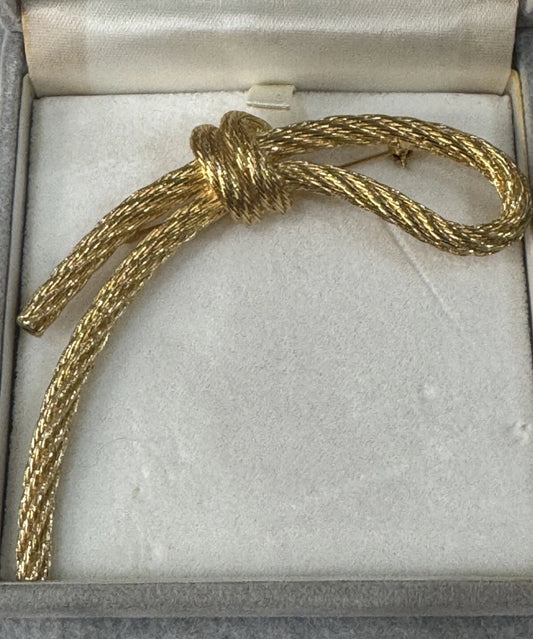 Vintage New in Box Signed Christian Dior Gold Tone Textured Rope Knot Brooch Pin
