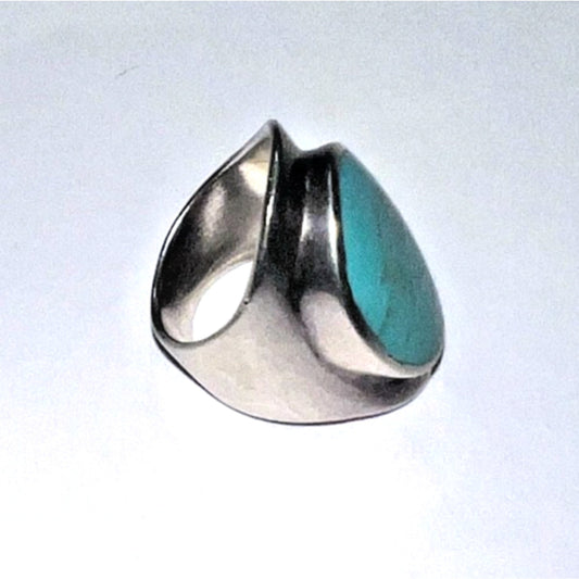 Vintage Sterling Silver Turquoise Ring Bold Oval Cabochon Southwestern Size 7