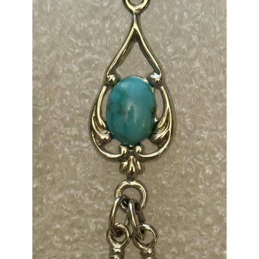 Vintage 925 Sterling Silver Turquoise Inlay Southwestern Pendant Pin Brooch 9.9g