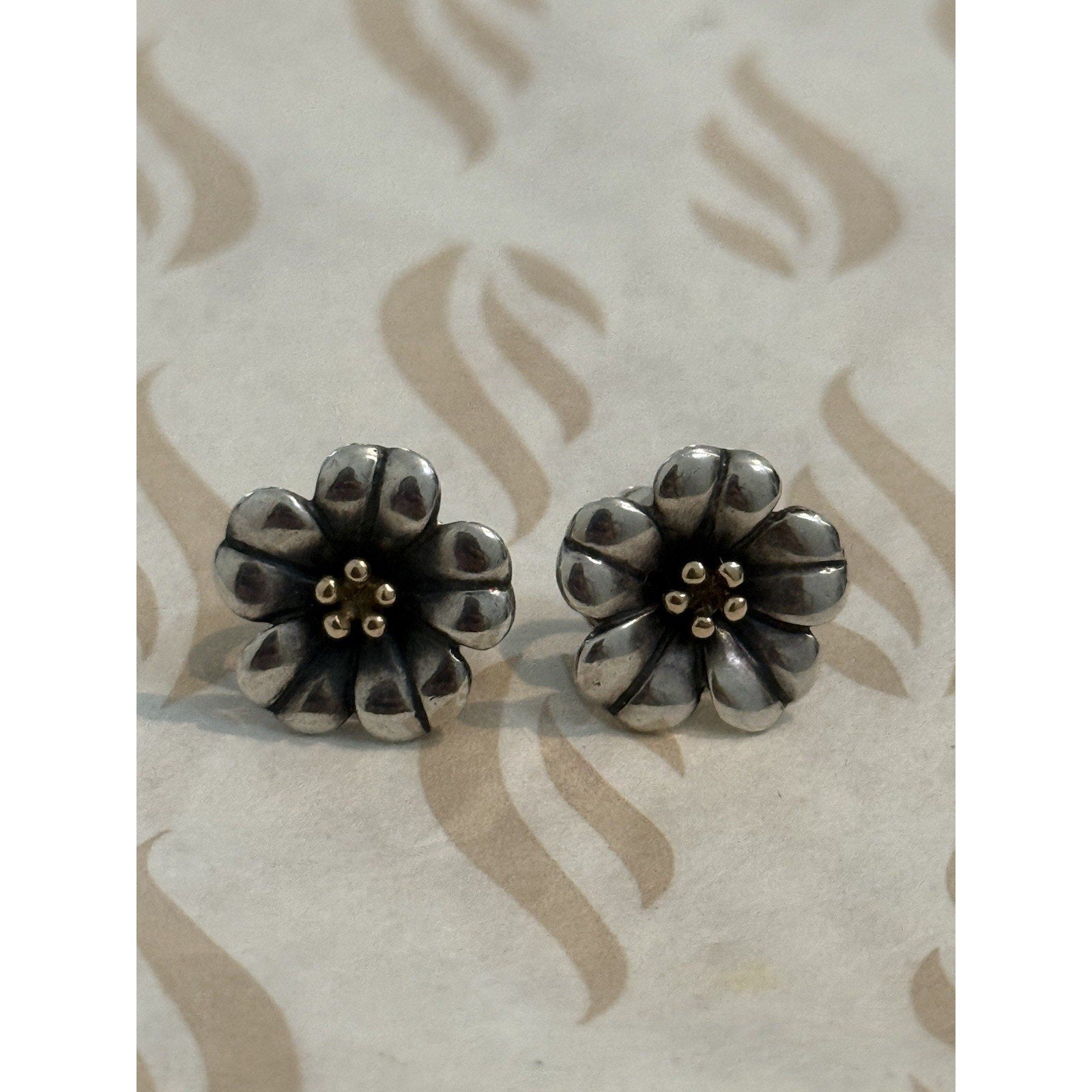 James Avery Rare Retired 18k Gold & 925 Silver April Flower Stud Earrings Pre-Owned