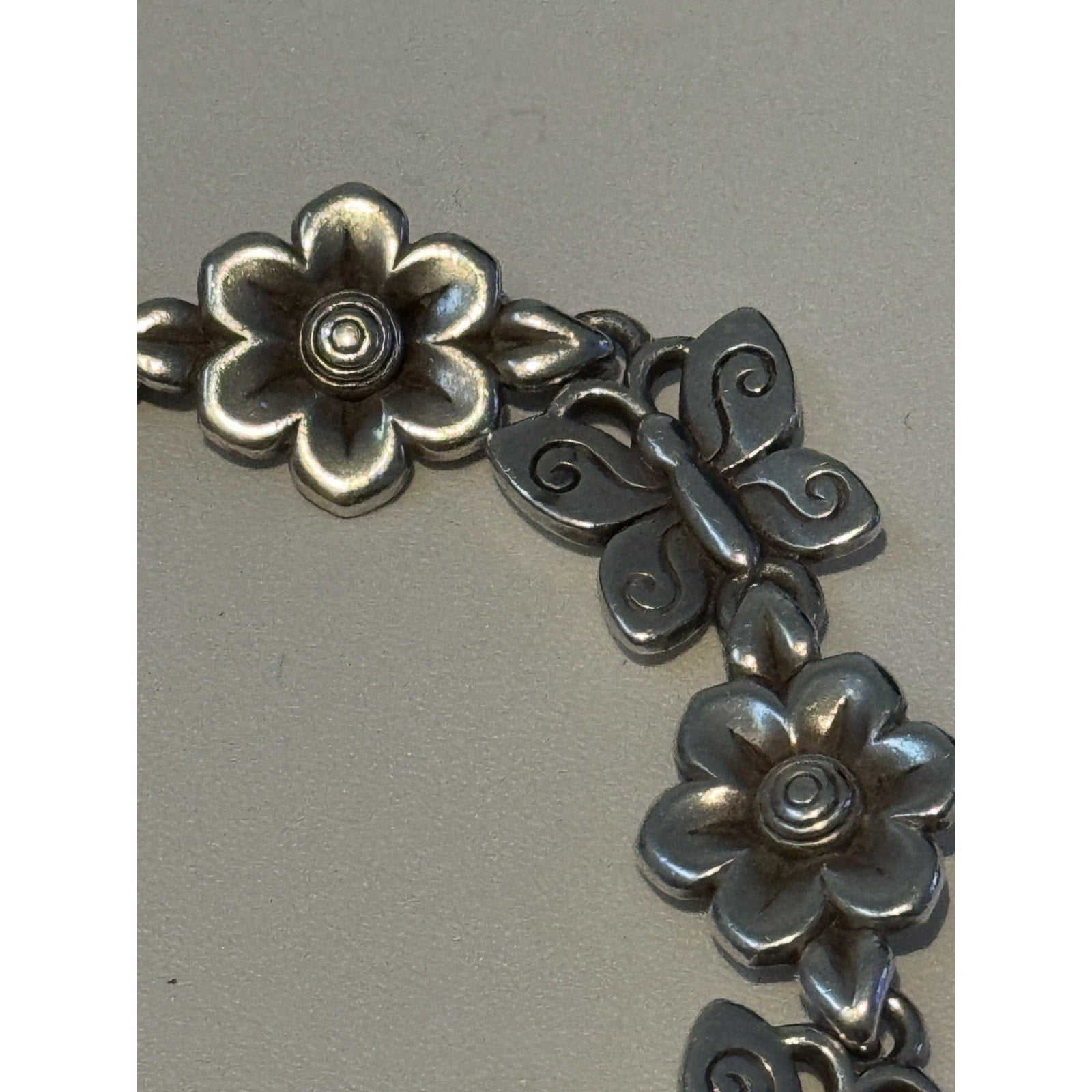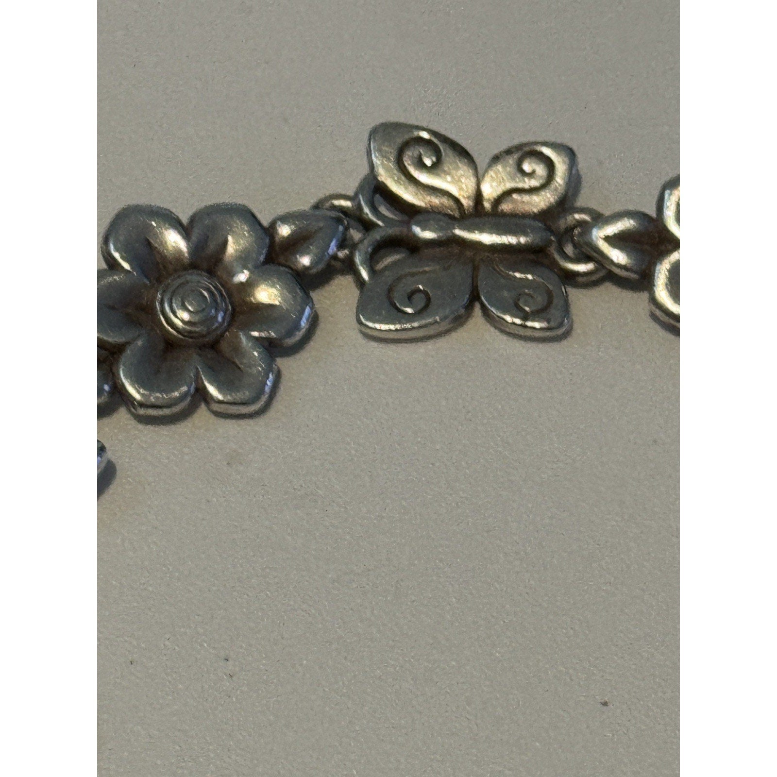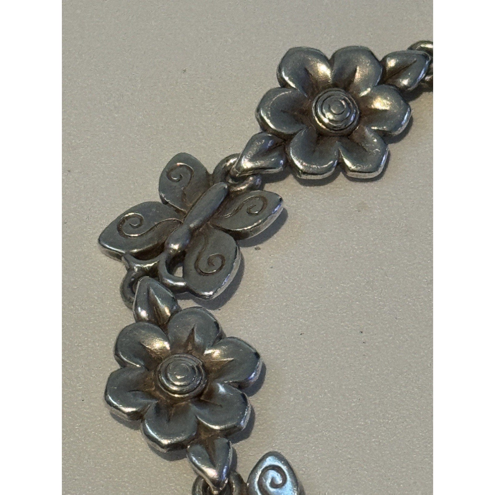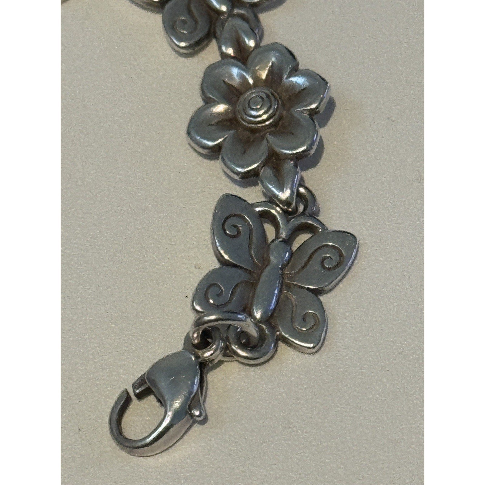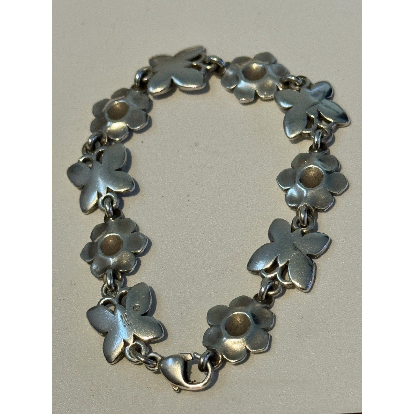 Pre Owned James Avery Retired HTF Silver Butterflies In Bloom Flower Bracelet 7 3/4”