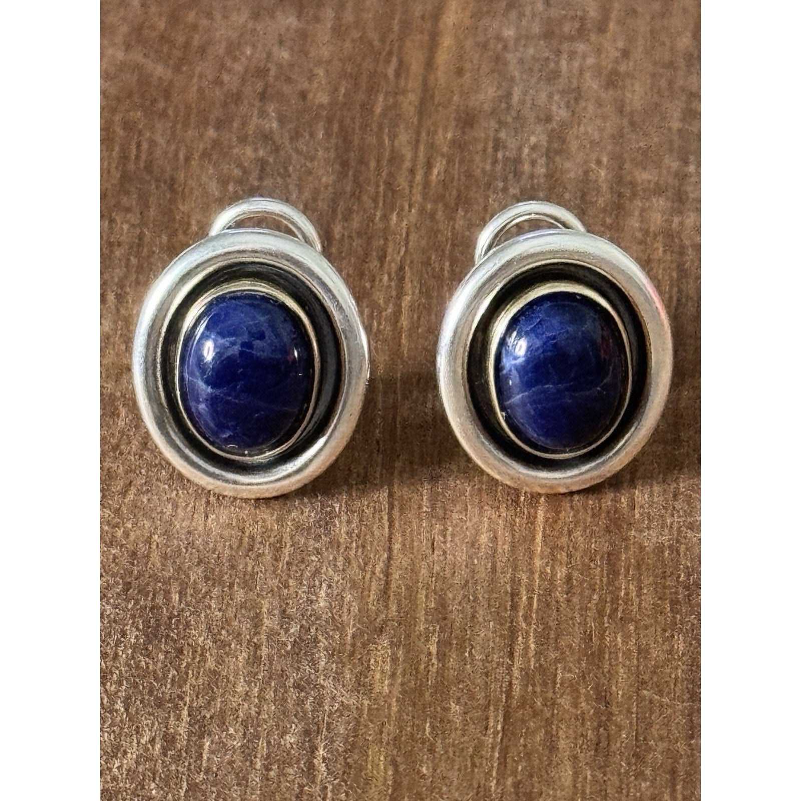 Pre Owned James Avery Retired RARE Sterling Silver And 14k Gold Oval Sodalite Earrings