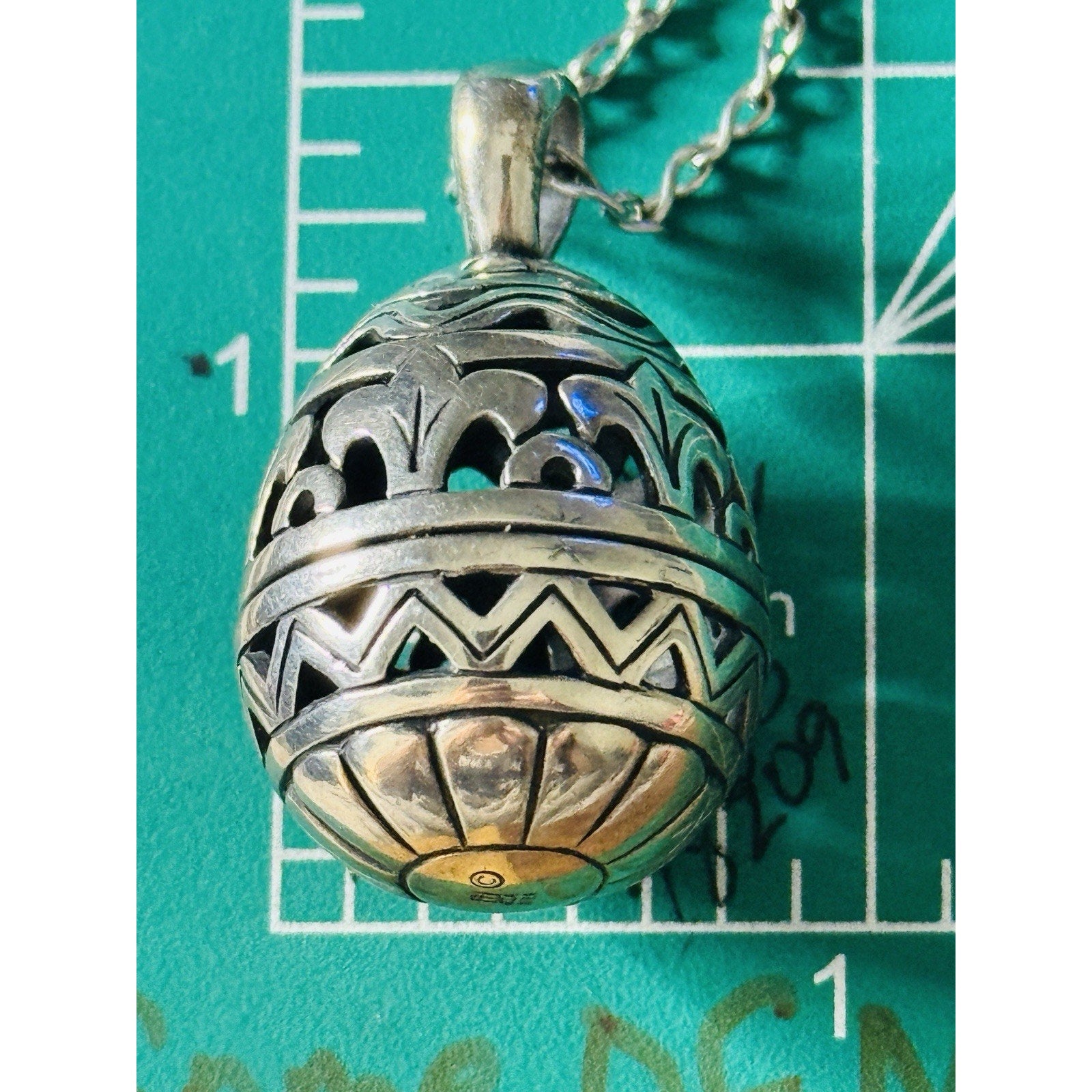 Pre Owned James Avery Retired X Large 3D Fleur De Lis Filigree Egg Pendant W/ 18” Necklace