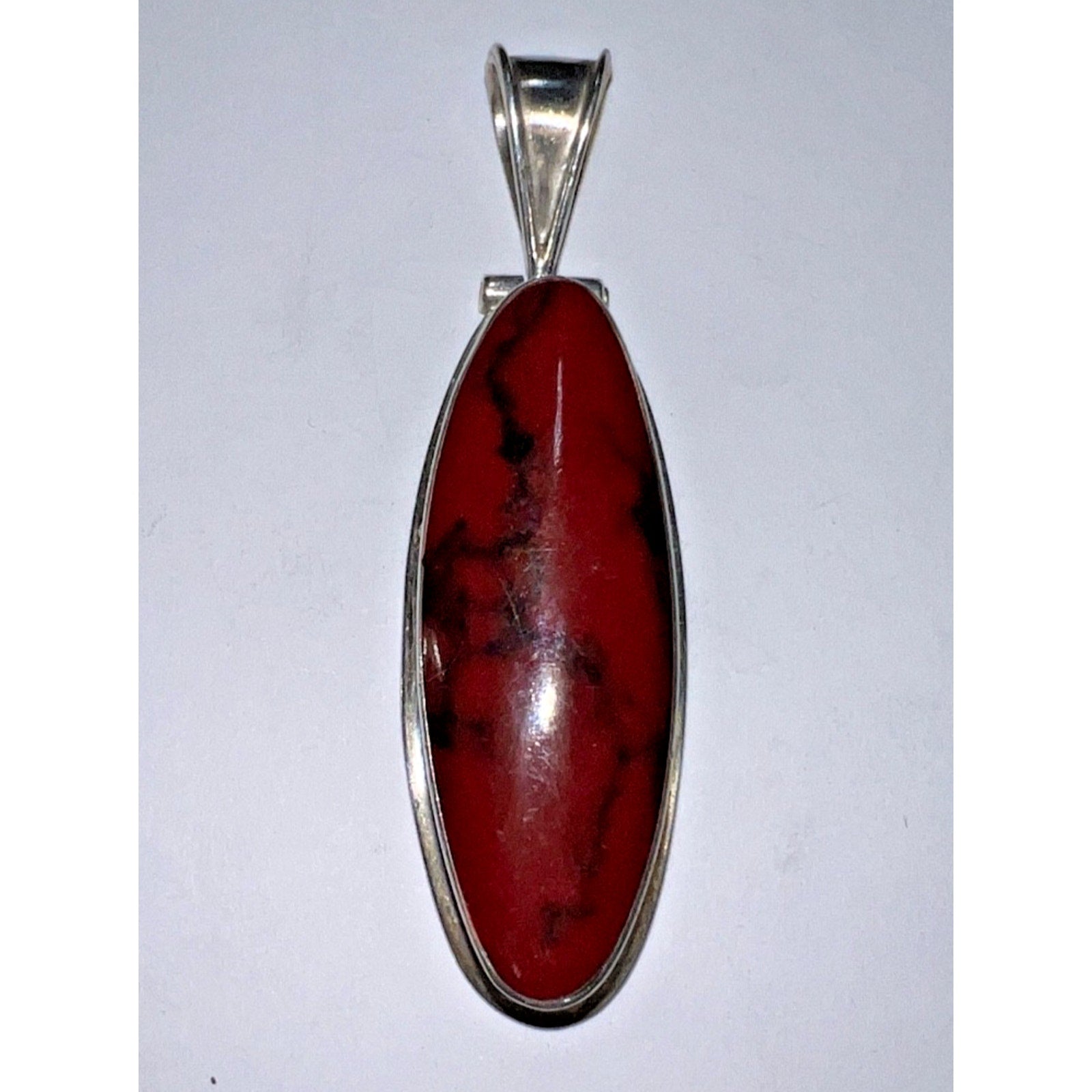 Large Sterling Silver Red Jasper Pendant – Oval Cabochon, Vintage Mexico .925