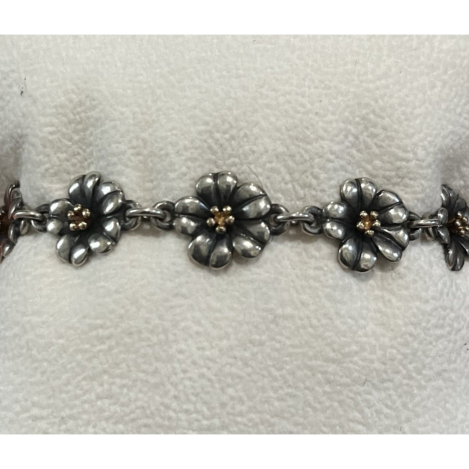 Pre Owned James Avery Retired 14k Gold & Silver April Flower Bracelet HTF 7.5”