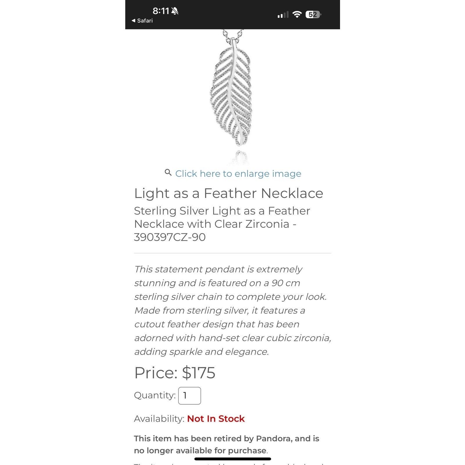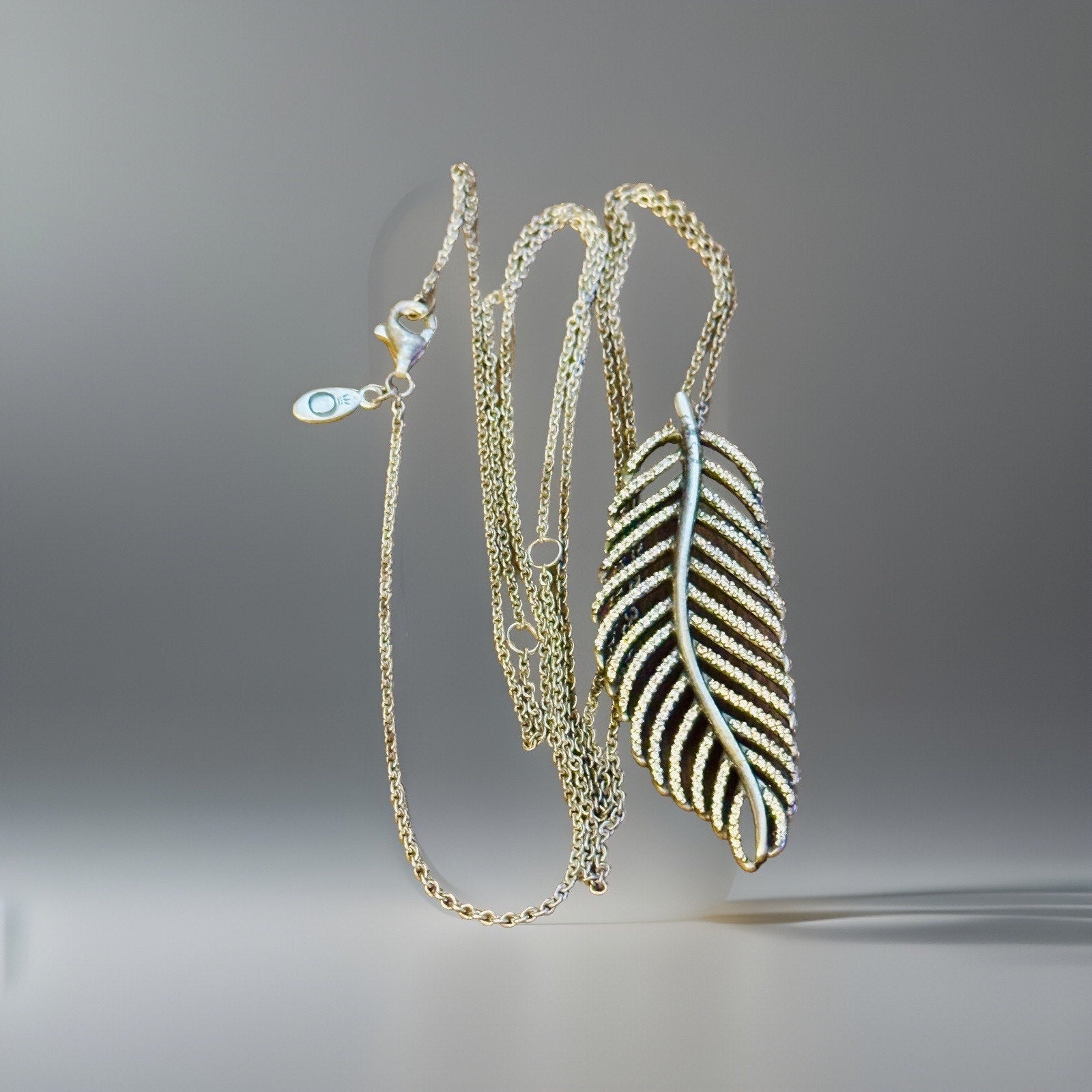 This retired Pandora necklace features a sterling silver chain with a delicate feather pendant, symbolizing lightness and elegance. The adjustable chain allows for a versatile styling option, making it easy to wear for any occasion. Crafted from 925 sterling silver, this necklace is a timeless accessory that can be worn daily or as a statement piece for special events. Perfect for those who appreciate minimalist and elegant jewelry pieces. Both pieces are Pandora and are signed as such. In Excellent condition.