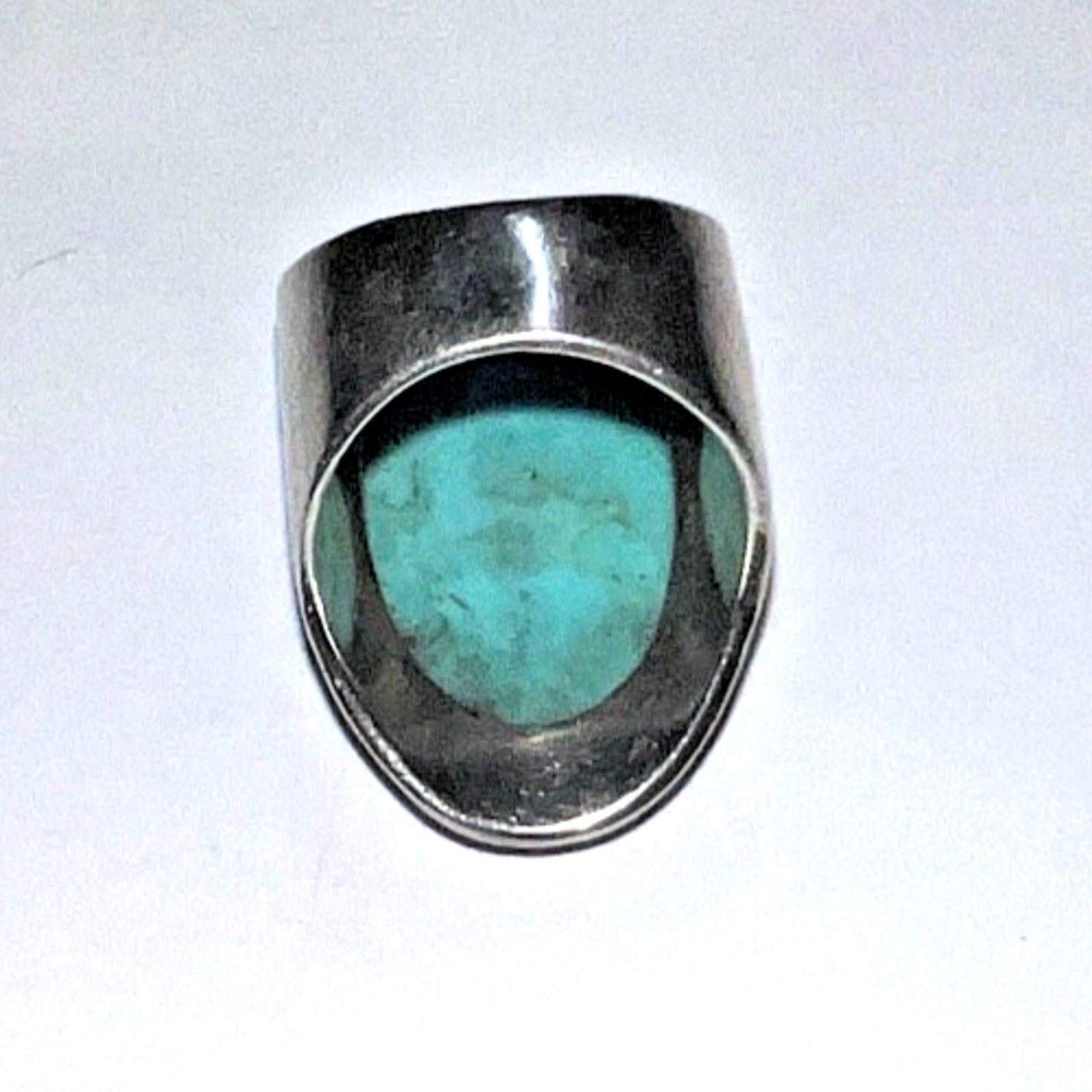 Vintage Sterling Silver Turquoise Ring Bold Oval Cabochon Southwestern Size 7