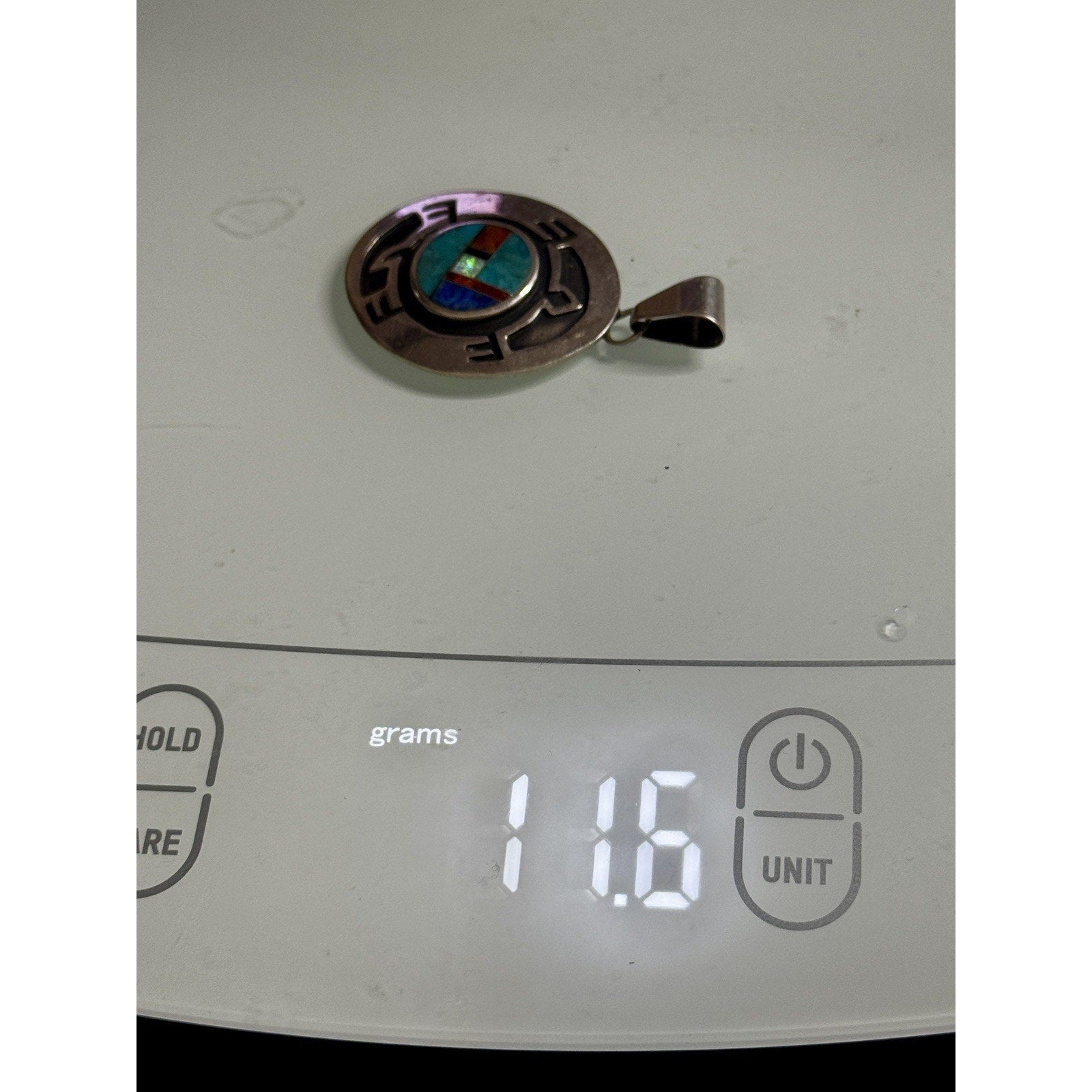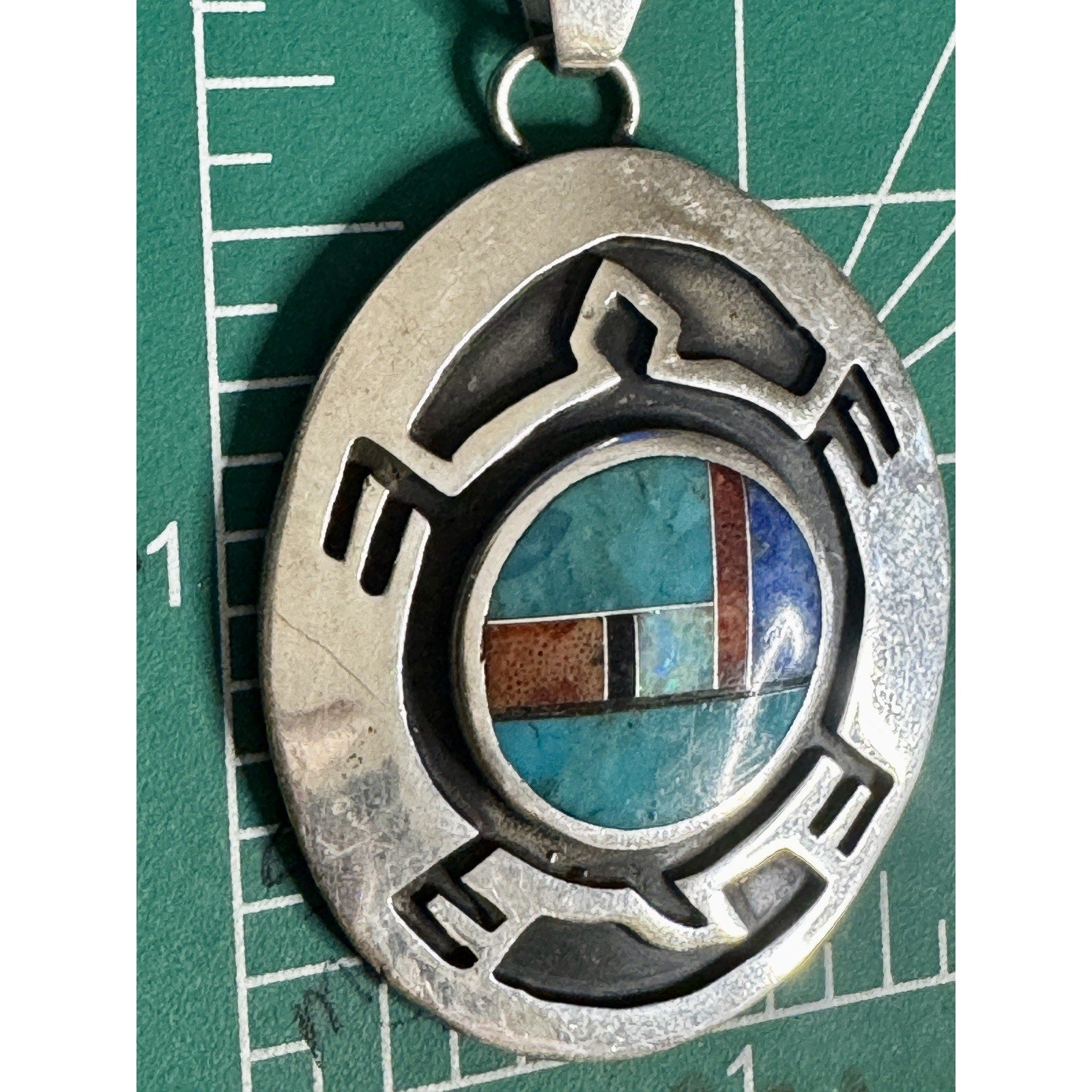 Vintage Zuni Native American Sterling Silver Inlay Pendant Signed F.L. 925